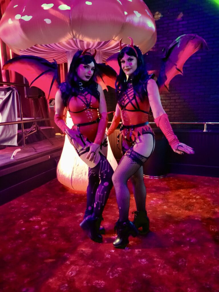 Transform any of our circus acts like jugglers, hand balancers, and LED performers into spooky or not so spooky clowns. In addition to all this, we have strolling tables, strolling champagne skirts and strolling tray performers that can also all be themed to match any color palette like purple and orange, black and red, or any other variation to fit your theme! These are all perfect for halloween parties!